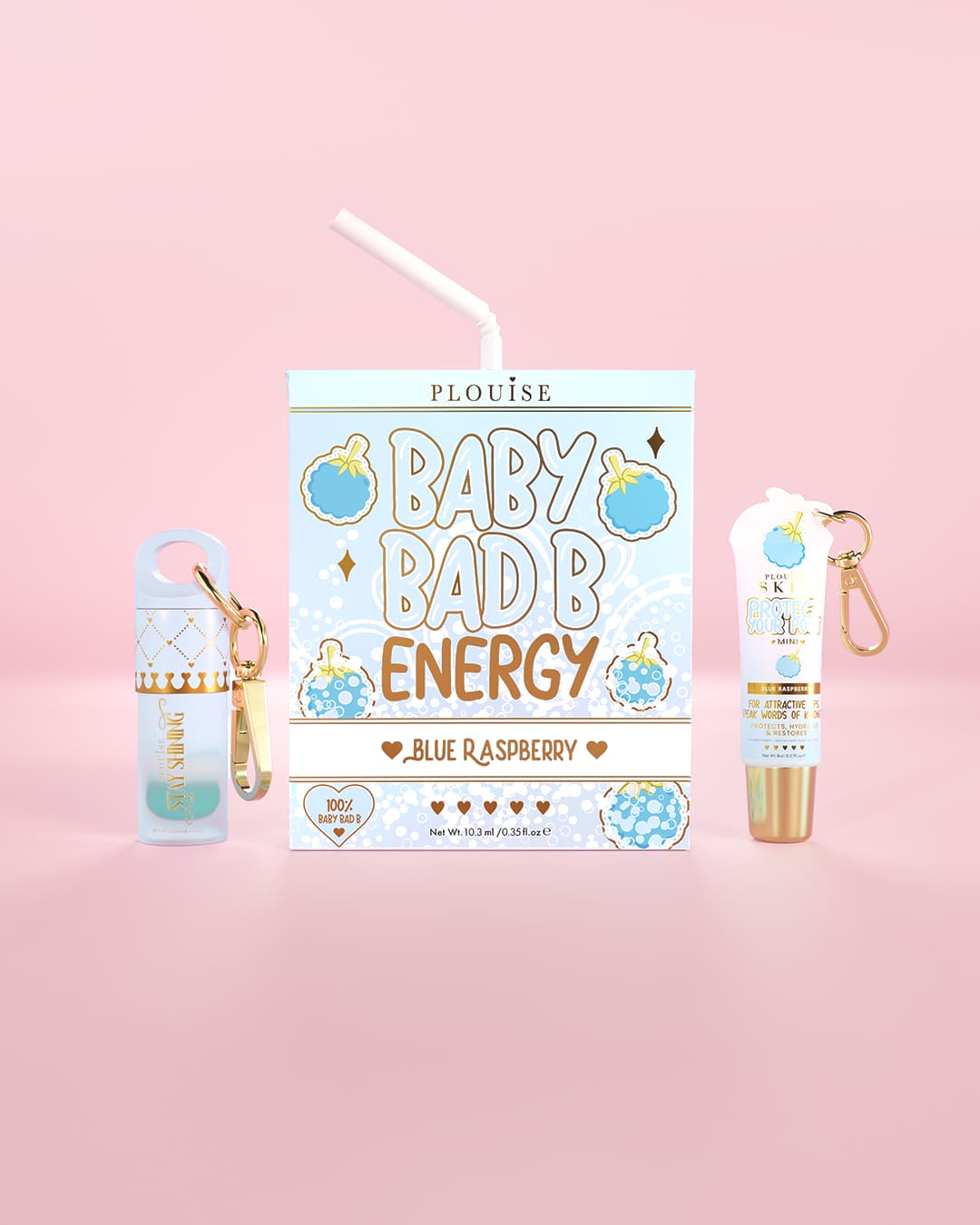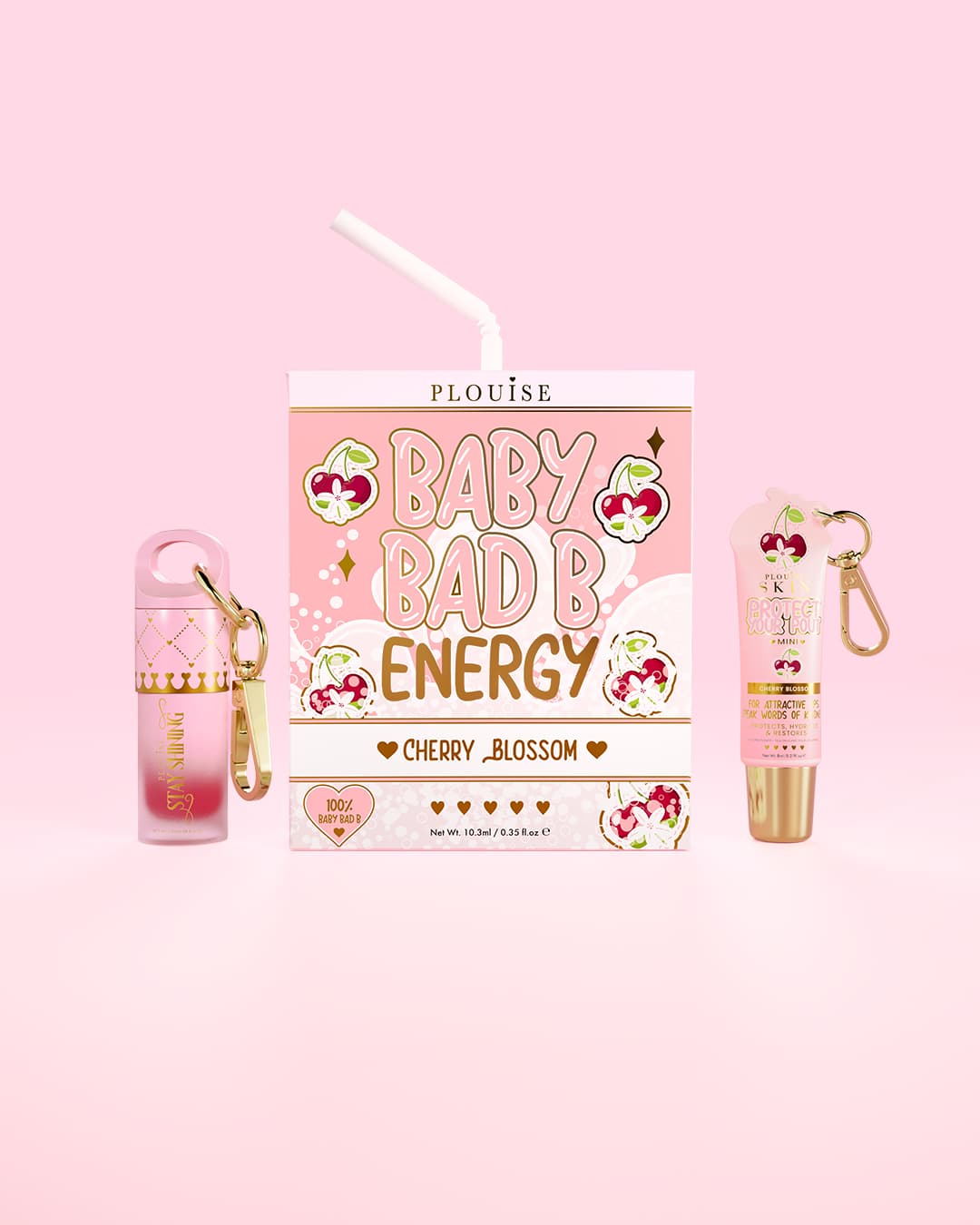 - Baby Bad Bitch Energy Lip Duo - Mini Stay Shining Lip Oil for juicy shine and Mini Lip Conditioner to keep lips soft and smooth, both finished with keychain attachments for on-the-go touch-ups