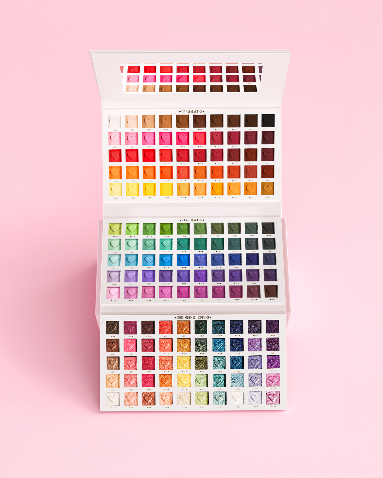 150 shades: 100 creamy mattes and 50 wet shimmers. Travel-friendly, vegan and cruelty-free.